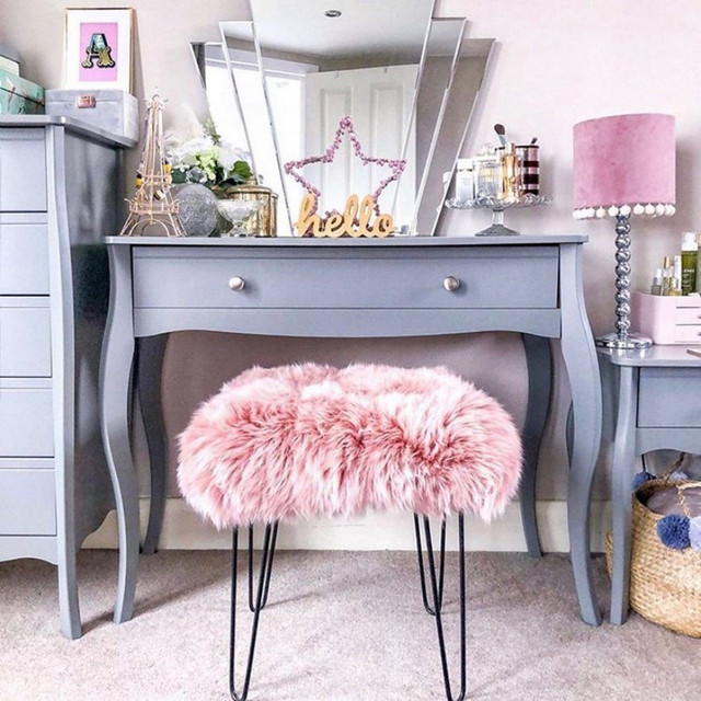 Make a stunning statement with sheepskin foot stools. Decorating your home or just looking for that perfect accent to finish off a room? Nothing makes a bigger style statement than a fluffy sheepskin foot stool in your bedroom, living room, office or children’s rooms. Choose from 22 breathtaking shades to make your room pop, including fuchsia, tiger orange, sage, dusky pink, ivory and lilac.